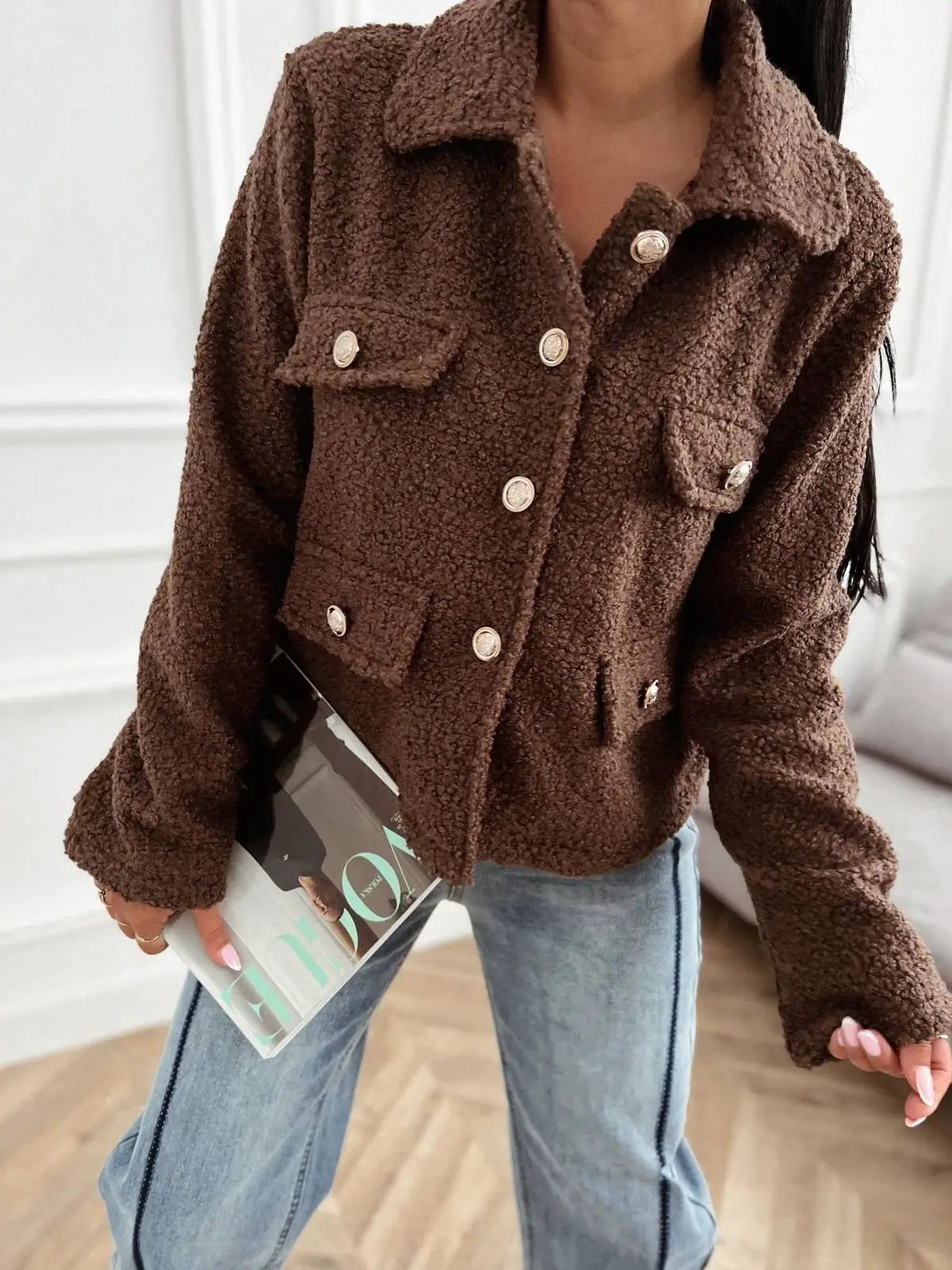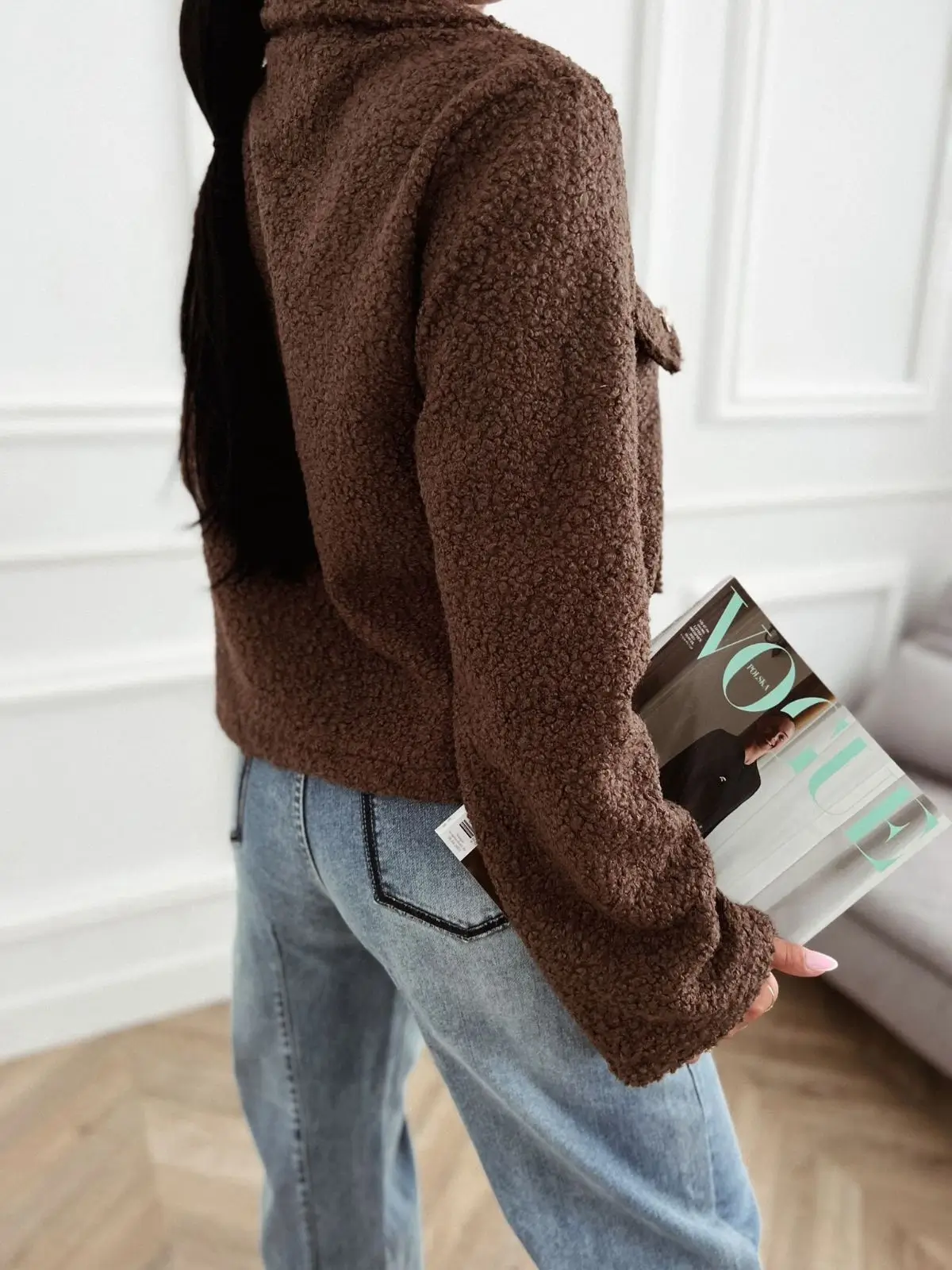 Brązowa kurtka koszulowa teddy – miękkość, styl i ciepło