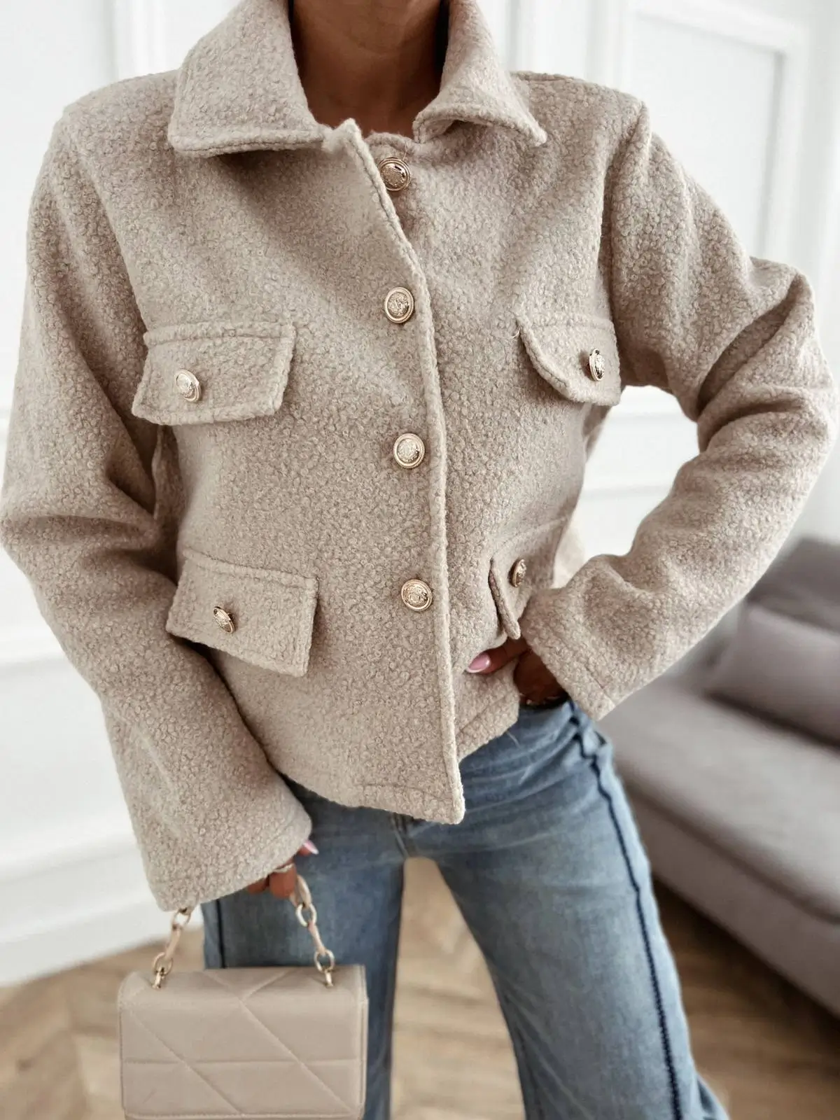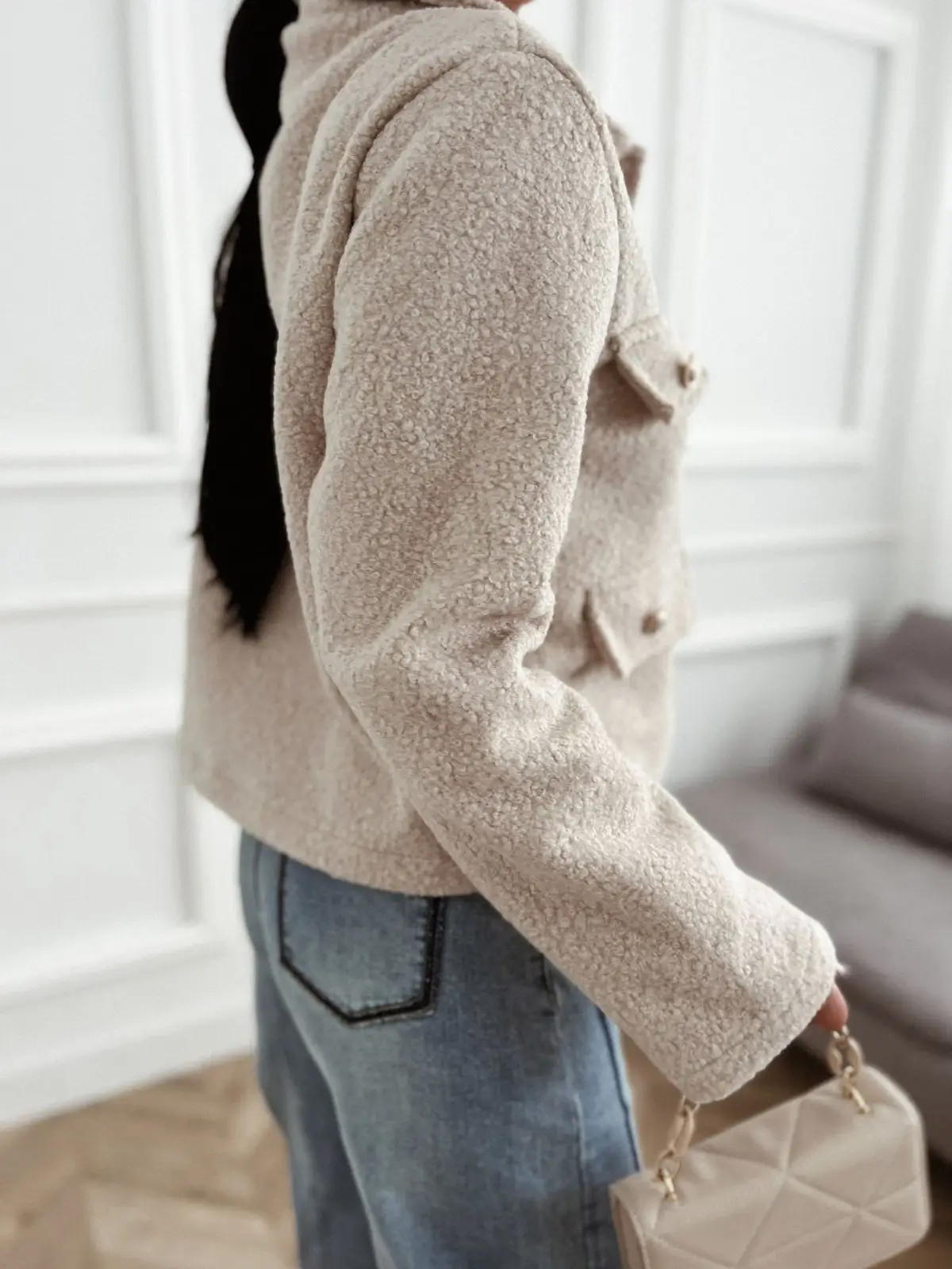 – Miękka tkanina typu teddy, która otula jak koc, a jednocześnie wygląda niezwykle modnie.