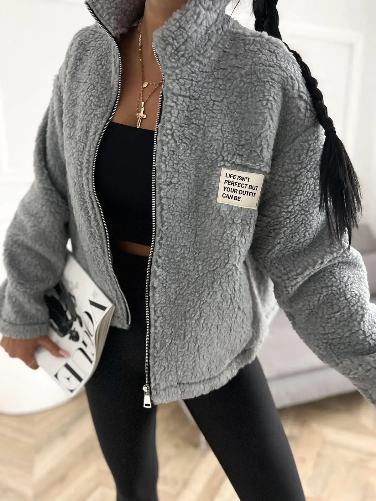 ✅ Miękki „misiek” (teddy/sherpa) – przytulny i ciepły